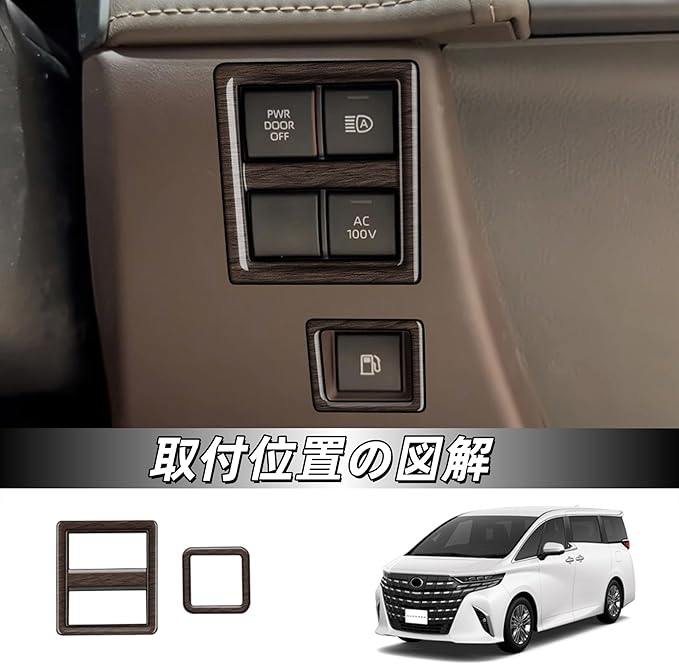 新型アルファード/ヴェルファイア 40系に対応 アクセサリー 運転席増設ドアスイッチキット スイッチパネルカバー フユーエルオープンスイッチフレーム 専用 グッズ 内装パーツ(木目調)