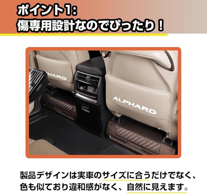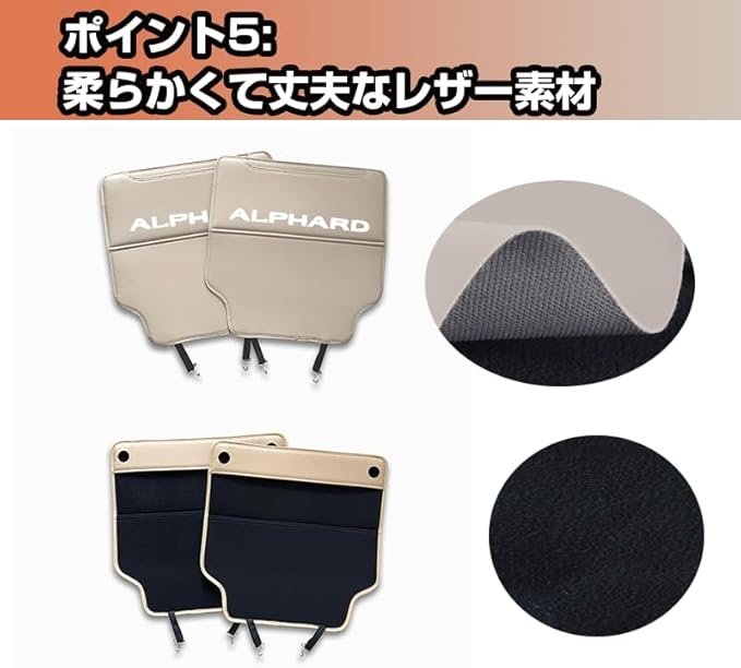 【商品仕様】 汚れ、キズの防止に! 取付簡単! 適合車種:適合トヨタ アルファード 40系 適合箇所:後部座席 材質:レザー 内容:キックガード 2枚セット