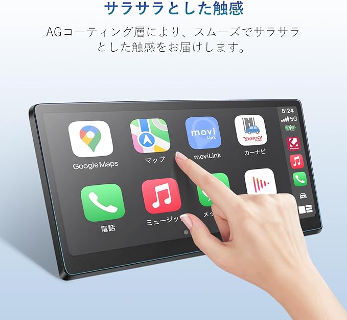 【AGコーティング】日常的にカーナビを使用していると、晴れた日の反射や指紋の悩みがありませんか?指でスクリーンをタッチすると、すぐに指紋や汚れがつき、清潔を保つのが難しくなります。そんな悩みを解消するのが、SKTUのアルファード 40系 ヴェルファイア 専用 カーナビ保護 AGガラスフィルムです。ガラスフィルムの表面に施されたAG(アンチグレア)コーティングにより、反射を抑える同時に、サラサラとした触感で指紋を強力に防止し、日常的な汚れや水気も抑えます。素早いタッチ反応で、快適な操作感も実現。また、マット素材が反射を抑え、鮮やかな画面表示を保ちながら、晴れた日の運転でも眩しさを感じません。これにより、ナビの操作性が向上し、より快適なドライブをサポートします。