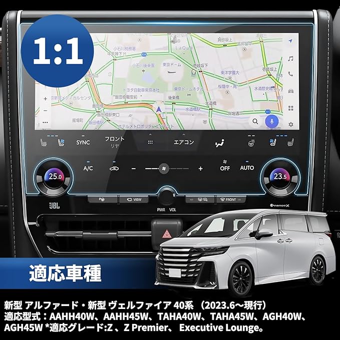 【14インチ ディスプレイオーディオ専用設計】トヨタ 新型アルファード / ヴェルファイア 40系 (2023年6月~) の純正14インチ ディスプレイオーディオ (T-Connect / Plus 対応) に 完全フィット。■適応型式:AAHH40W、AAHH45W、TAHA40W、TAHA45W、AGH40W、AGH45W ■適応グレード:Z 、Z Premier、 Executive Lounge。型式・グレード指定明確で安心。