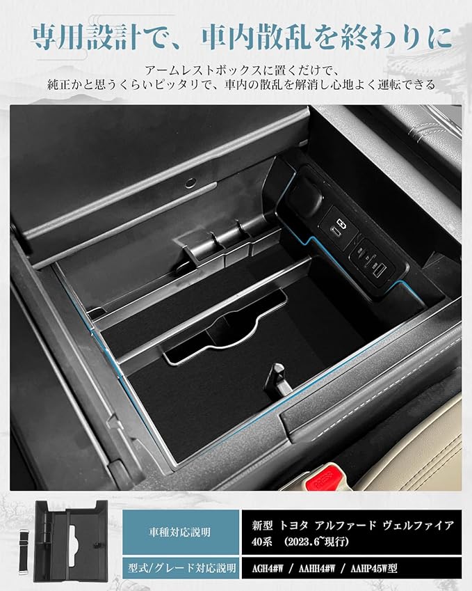 ruiya 新型 トヨタ アルファード40系 ヴェルファイア 40系 専用 コンソールトレイ コンソールボックス インナートレイ センターコンソール アクセサリー 小物入れ ABS素材 ガタガタ音なし 内装パーツ カスタムパーツトヨタ アルファードヴェルファイア 40系 コンソールボックス