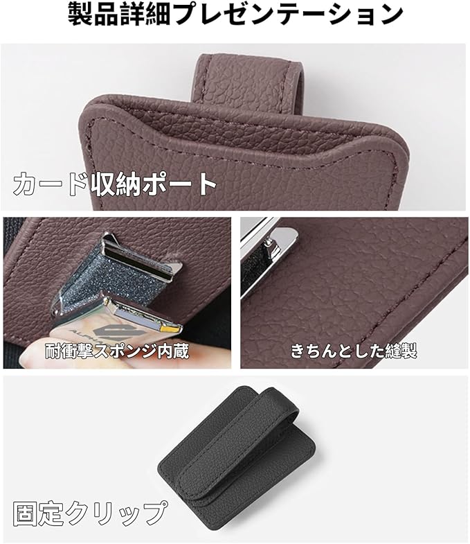 【良い耐久性・耐衝撃スポンジ設計】高品質のPUレザーを採用し、耐摩耗性、汚れに強く、耐久性が良く、長く使えます。メガネを傷つけないように、クリップの中でクッションスポンジを内蔵し、走行中の振動を恐れません!