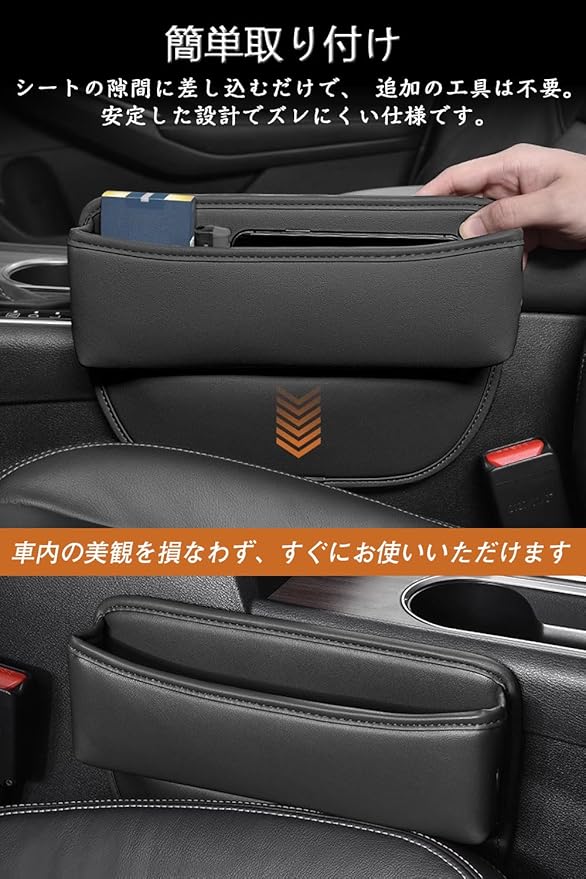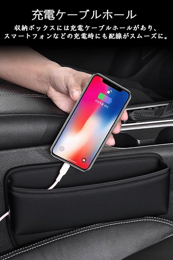 トヨタ アルファード 車用 シートサイドポケット Alphard 隙間収納ボックス 新型アルファード 40系/30系/20系 全シリーズ サイド収納ボックス 小物入れ 落下防止 カー用品 PUレザー 充電穴付き 差し込みタイプ アルファード アクセサリー 内装パーツ 運転席+助手席 2個入り (トヨタ 専用 アルファード)