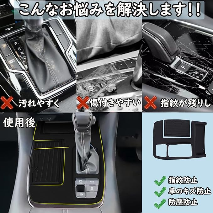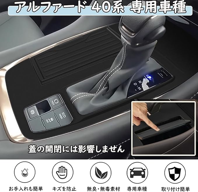【傷防止と騒音防止】ゴム製なので、傷や指紋がつきにくいです。柔らかい滑り止めが車内の振動を吸収し、小物の滑りによる雑音を軽減します。静かで快適な車内空間を実現します。アルファード40系/ヴェルファイア40系は密着したデザインで、装着後も違和感なく快適に使用できます。