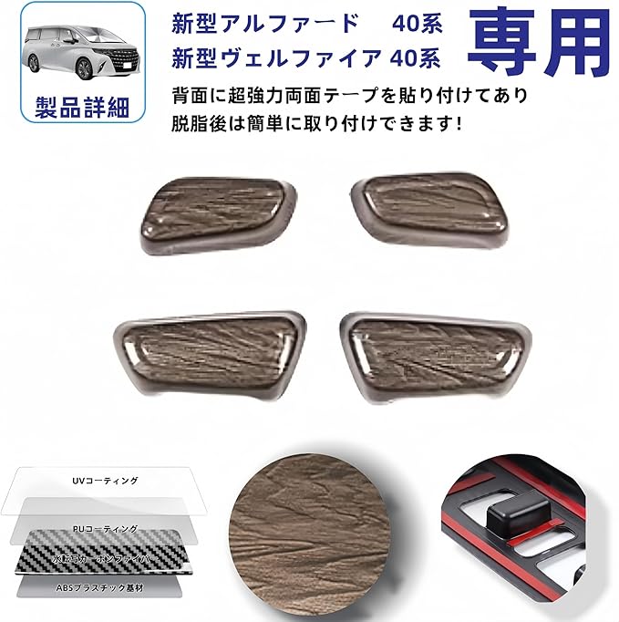 新型 アルファード/ヴェルファイア40系 に適合 アクセサリー 助手席 運転席 パワーシートスイッチ シートボタンパネルカバー 専用カスタム 内装パーツ (木目調)