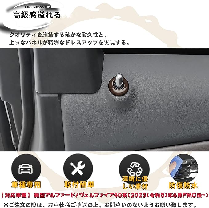 適用 新型アルファード40系 ヴェルファイア 40系 カスタム アクセサリーパーツ フロントドアロックピンリングカバー専用車種 内装グッズ 木目調ブラウン