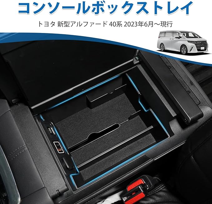 トヨタ アルファード ヴェルファイア 40系 コンソールトレイ 収納ボックス ALPHARD VELLFIRE 40 センターコンソール ティッシュケース 小物入れ R5.6~現行 アクセサリー 内装パーツ 専用グッズ 滑り止め ゴムマット付き 車種専用 装着簡単 メーカー直営