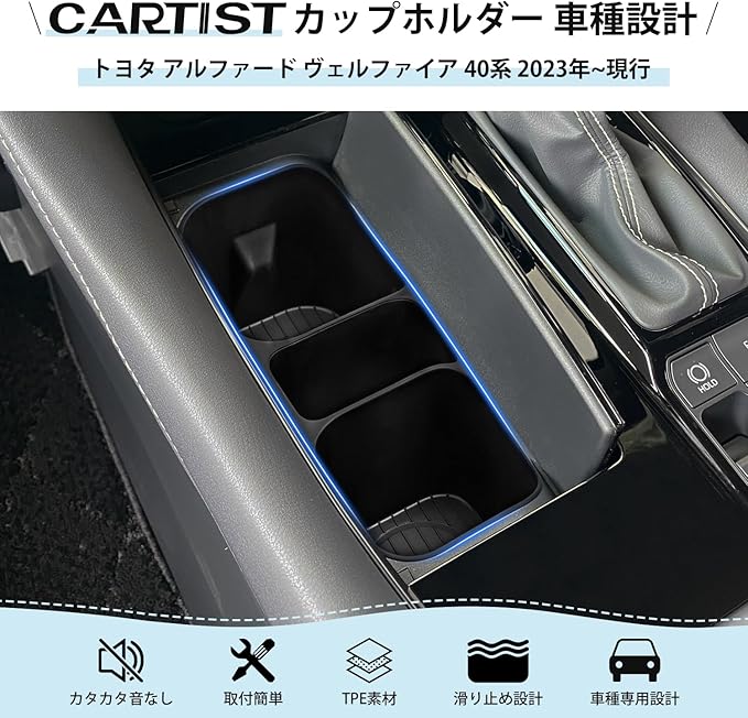 Cartist トヨタ アルファード ヴェルファイア 40系 カップホルダー 最新型 TPE素材 Alphard Vellfire 4代目 2023年~現行 衝撃吸収 コンソールトレー ドリンクホルダーカバー アンチスキッド センターコンソール 専用設計 収納ケース アクセサリー 内装 カーパーツ