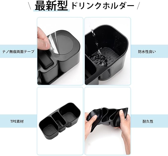 4.【簡単に取付】:本製品の底面はナノ無痕両面テープを付属しておりますので、装着前、そのテープを剥がしてから、センターコンソールのドリンクホルダーに差し込むだけで簡単な取付で、違和感も無く便利です。その固定性も良いです。また、テープを剥がしても痕が残らない。ご注意:元ドリンクホルダーの仕切りを外す必要があります。