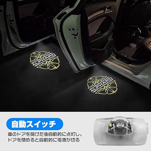 車用 カーテシランプ ドアウェルカムライト アルファードに対応する 30 / 20 系 前期 後期 に対応する パーツ アクセサリー 【2個セット】 LEDロゴ投影 高輝度 (アルファードに対応-2個セット-2)