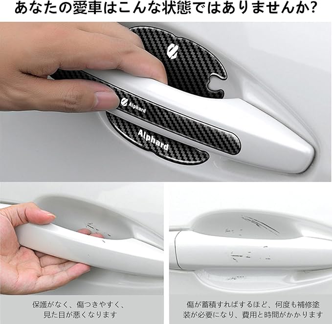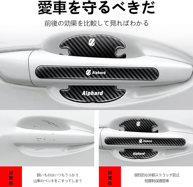 【InnoWave】アルファード Alphard専用 ドアハンドル プロテクター 8個セット2018年4月~現在 アルファード 30系 40系 車ドアガード キズ防止 装着簡単 独自設計 黒