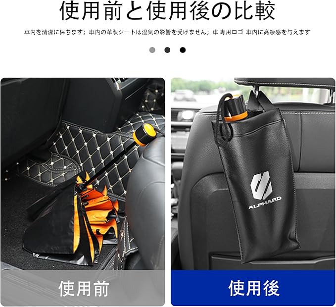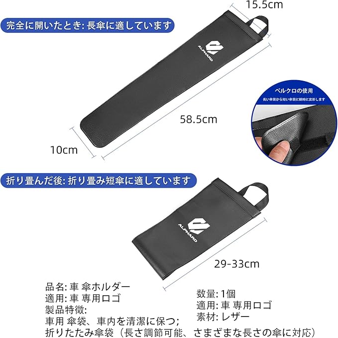 アルファード 車内収納用品 車傘収納 傘ホルダー シートバック 傘袋、Alphard 新型 アルファード 40系 30系 20系 専用 アクセサリー パーツ 便利な車用品 折り畳み傘 長傘 両用傘カバー 傘入れ レザー 専用ロゴ 1PC 全車種に適合