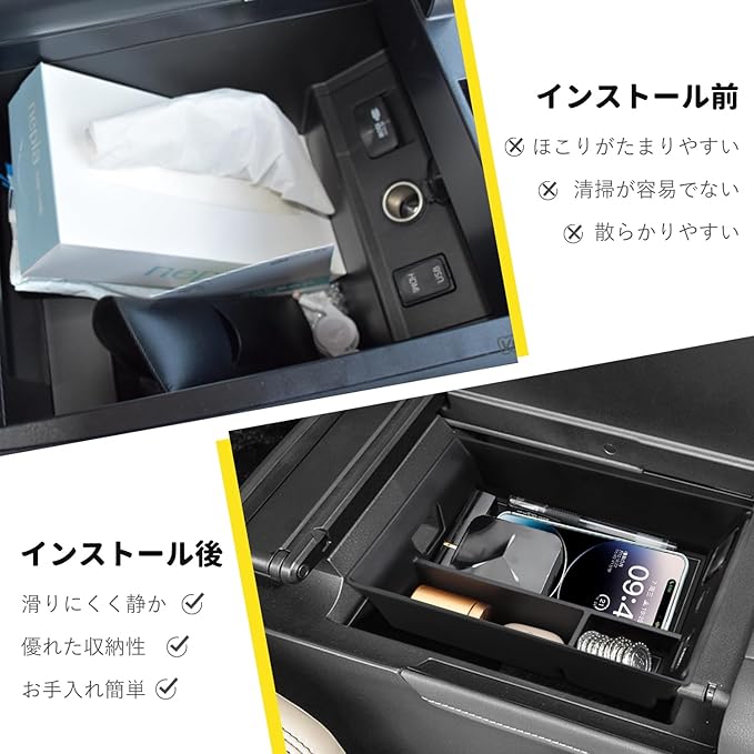 【収納性・便利】タバコ、駐車券、スマホ、カード、コイン、メガネ、クレジットカードや鍵など、小物関係の収納には最高です。滑り止め加工済みラバーマット、防塵、防キズ、小物が動いた際のカタカタ異音を減少します。ノーマルの無駄な広い空間をトレーを使う事によって機能性と収納性が飛躍的に上がりへの転換しましょう!!