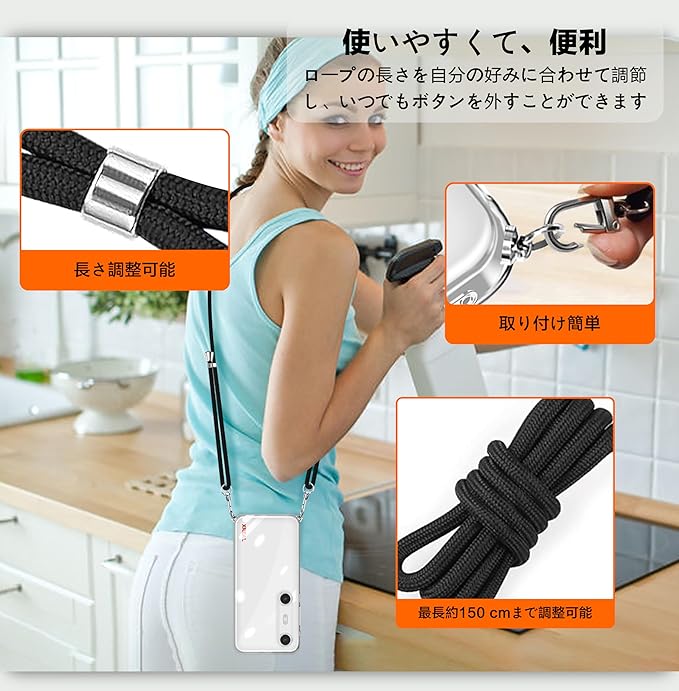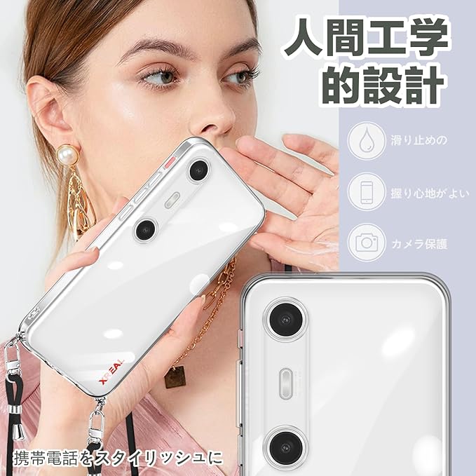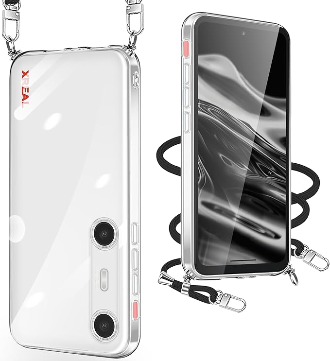 XREAL Beam Pro 用 ケース クリア ショルダー XREAL Beam Pro 携帯カバー 耐衝撃 スマホケース ストラップ付き 調節可能 肩掛け 斜めかけ 縄掛けケース 紐付き TPU 黄変防止 薄型 軽量 取り外し可能 落下防止【透明】