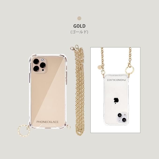フォンネックレス(Phonecklace) PHONECKLACE iPhone 13 Pro Max ケース チェーンショルダーストラップ付き クリア [ クロスボディフォンケース 首かけ 斜めがけ 肩掛け ネックストラップ スマホ ] ゴールド PN21614i13PMGD【国内正規品】