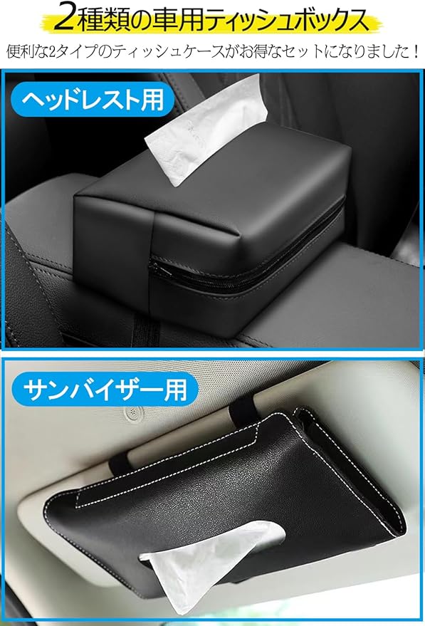 【シートバック+サンバイザー 2点セット】サンバイザー用ティッシュケース:サンバイザーに簡単装着できるティッシュケース。取り出しやすくて目障りにならないので、運転中にはより安心です。シートバック用ティッシュケース:車のヘッドレスト、アームレスト、コンソール、シートサイド、ダッシュボードに取り付けることができ、ティッシュや小物の保管に多機能で便利です。