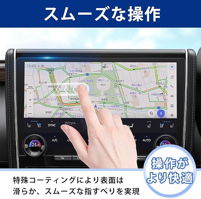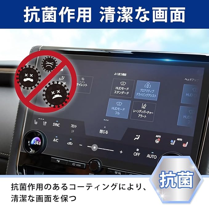 指紋防止:指紋や汚れを防ぎ、アルファード(ヴェルファイア)のナビ画面をしっかり保護します。ホコリが付着しにくい帯電防止仕様です。