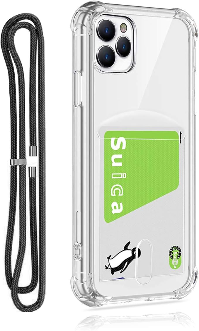 Pelanty for iPhone 11 Pro Max 縄掛けケース for iPhone 11Pro Max 背面カバー クリアケース 柔軟 シリコン 透明TPUバンパー ICカード収納 ネック ショルダー ストラップ付き アイフォン11Pro Max 落下防止 衝撃吸収 指紋防止 薄型軽量 (縄掛け-透明)