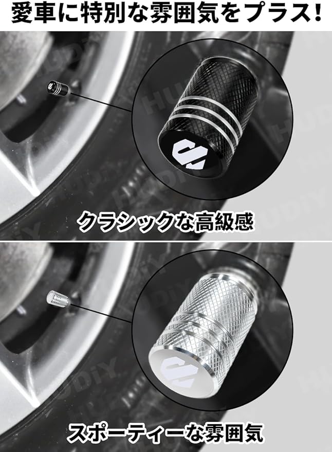 【製品特徴】1. 専用の車両ロゴデザインで、車体全体との完璧な調和を実現。2. 優れた気密構造がエア漏れを効果的に防止し、タイヤ内の空圧を安定維持。3. 走行安全性を高め、タイヤの寿命を延ばし、エア漏れリスクを低減します。4. 愛車の魅力を引き立て、ご自身のこだわりを表現できるとともに、車両全体のグレードを印象付けます。