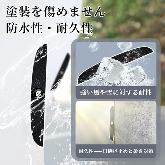 【取り付け簡単・高粘着力】製品の裏面には強力な裏側テープが付いており、保護フィルムを剥がして、貼るだけで取り付け完了です.三倍ほどの防水性は雨にあっても心配不要で、しっかりと貼り付け可能で、いつも強く保ちできます.取り外す場合では、跡は残らず、ご愛車の塗装をしっかりと守ります