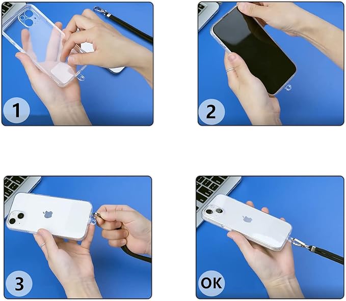 【実用性1:取付簡単の組合せ】:機種専用の透明カバー&ストラップホルダーのシート&ロングストラップというセットで3n1同梱販売のです。ホルダーシートをカバーの中に入れて、充電口からハトメを出した上に、端末をカバーに取り付けたら完成!着脱が超簡単ですよ。