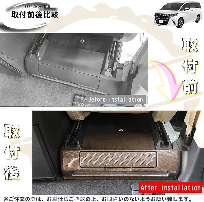 適用 新型 アルファード40系 ヴェルファイア 40系 カスタム アクセサリー 専用 2列目収納ボックスパネル 内装パーツ 木目調ブラウン