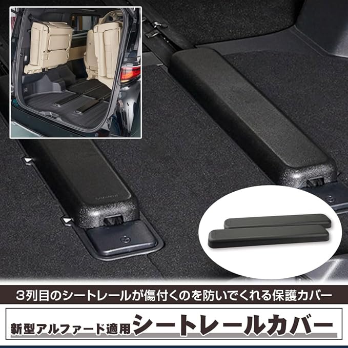 アルファード/ヴェルファイア40系を愛用している方にお勧めのシートレールカバーです。3列目のシートを格納して荷室として使うと、レールが剥き出しのままになり埃が溜まったり傷だらけになる…といったお悩みを解決します。