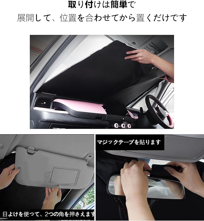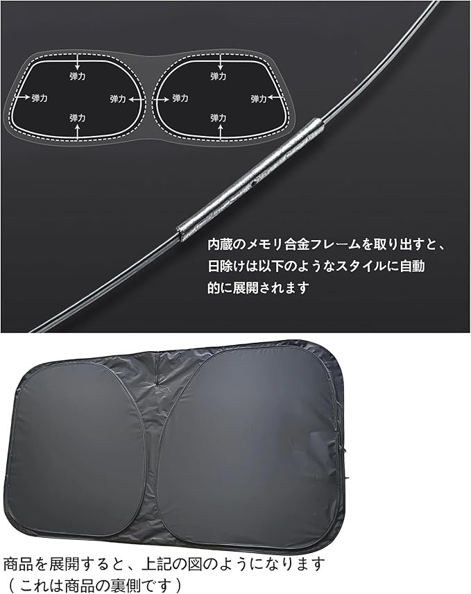 1.この商品は、車のフロントウィンドウガラスの内側に使用する遮光シェードです。