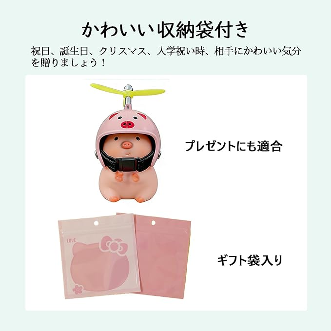 「装飾効果」自転車用アクセサリー、ハンドルにつけ、自転車を装飾します。自転車に乗る時、子豚ちゃんはそばにいるから、寂しくないです。その上、頭の上のタケコプターはクルクルして面白いです。つまらない時間も楽しくなります。