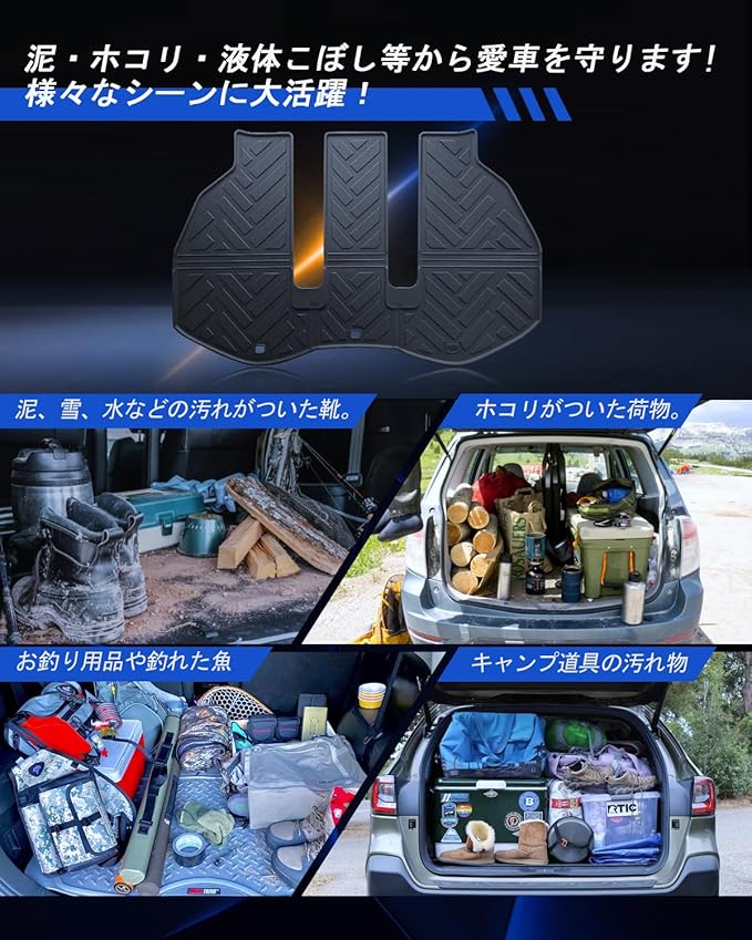 【ラゲッジマットを敷くだけで簡単】重さはそれほどないので女性一人でも簡単に出来ます。ネジや両面テープなどは要らない取付を採用、到着したすぐに取付できます。※注意事項※:製品包装が折りたたみ式で梱包されているため、商品到着直後は折り目残ることもございますが、弾性の高い素材ですので時間たって元の状態に戻ります。予めご了承ください。