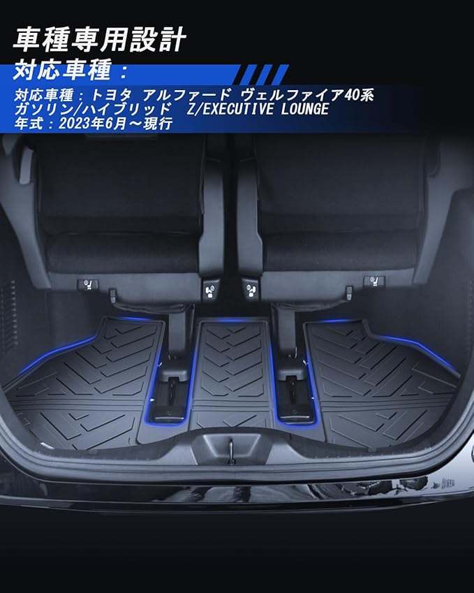 【車種専用】: 新型 「トヨタ アルファード・アルファードハイブリッド 40系 AAHH40W AAHH45W AGH40W Z/Executive Lounge」 「ヴェルファイア・ヴェルファイアハイブリッド 40系 TAHA40W TAHA45W Z/Z Premier Executive Lounge」 ※ハイブリッド車/ガソリン車 2023年(令和5)6月~現行 7人乗り専用マット【ピッタリ専用品】アルファード40系専用ラゲッジマットがトランクルームの形状に合わせたデザインで、しっかり固定され、フラットな仕上がりに、ズレる心配なし!トランクを開けるたびに快適な気分に、車内のインテリアにも自然に馴染みます。