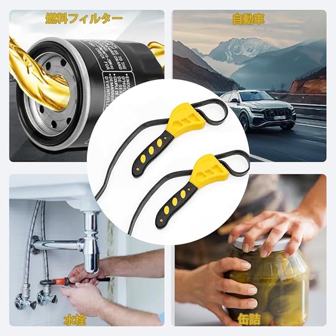 【幅広い用途】多機能スパナで、燃料フィルター、自動車、シャワーヘッド、水栓、缶など、多様な用途に使用可能です。