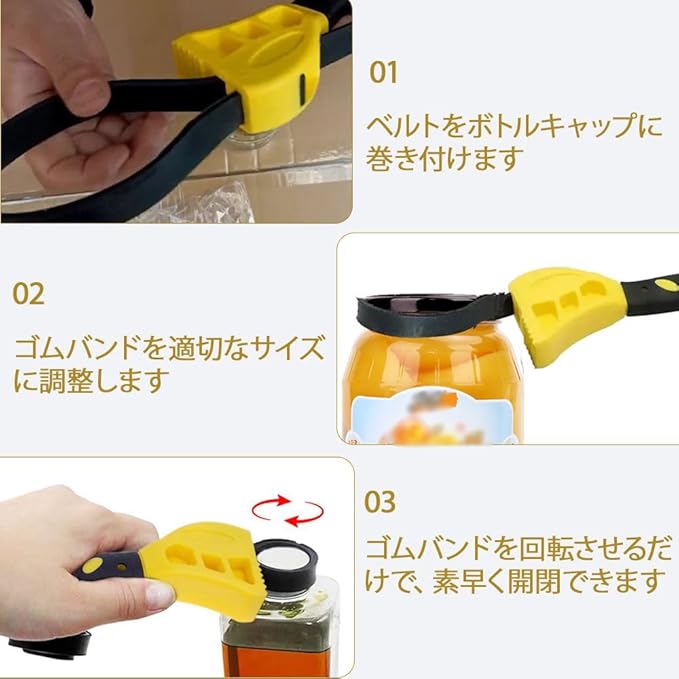 【使用が簡単です】ベルトをボトルキャップに巻き付け、ゴムバンドを適切なサイズに調整し、その後ゴムバンドを回転させるだけで、素早く開け閉めが可能です。