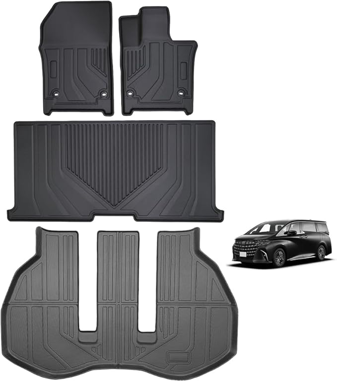 【対応車種】トヨタ アルファード /ヴェルファイア 40系 型式:AGH45W/AGH40W/AAHH40W/AAHH45W。年式:2023年(令和5年)6月-現行。※7人乗り、ガソリン/ハイブリッド車対応。※年式・グレード・オプション等により適合しない場合が御座います。車種や形状をご確認いただいた上、お買い求めください。【セット内容】:運転席用1P、助手席用1P、後席用1P、トランクマット1P。