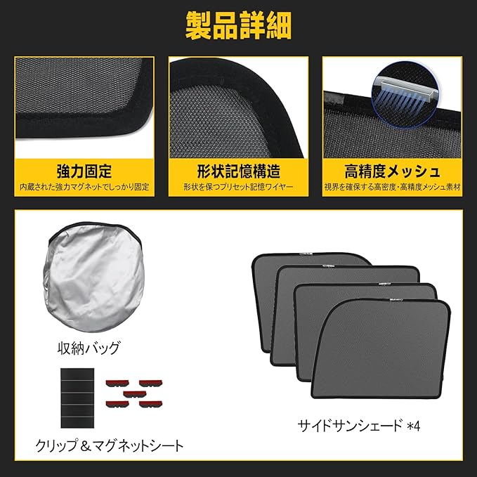 トヨタに対応 アルファード 40系/トヨタ ヴェルファイア 30系 2023~現行 メッシュカーテン 四枚セット マグネット式 防虫 虫除け 遮光 通気 サンシェード 車中泊 アウトドア 折り畳み式 収納袋付き 簡単着脱 車種専用 アクセサリー