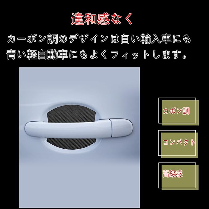●内容数:4枚 ドアノブ 引っかき傷防止フィルム(カーボン調のデザインは白い輸入車にも青い軽自動車にもよくフィット します。)