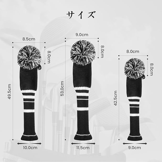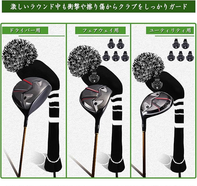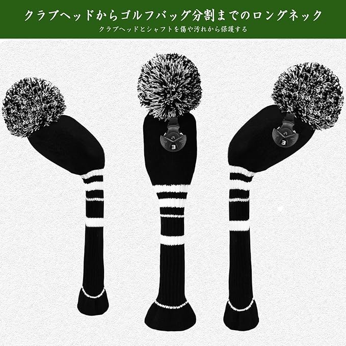 ゴルフヘッドカバー ニット素材 440cc/460cc 対応 ドライバー/フェアウェイ/ユーティリティー用 変換ダグ付属 軽量防塵 ヘッド保護カバー