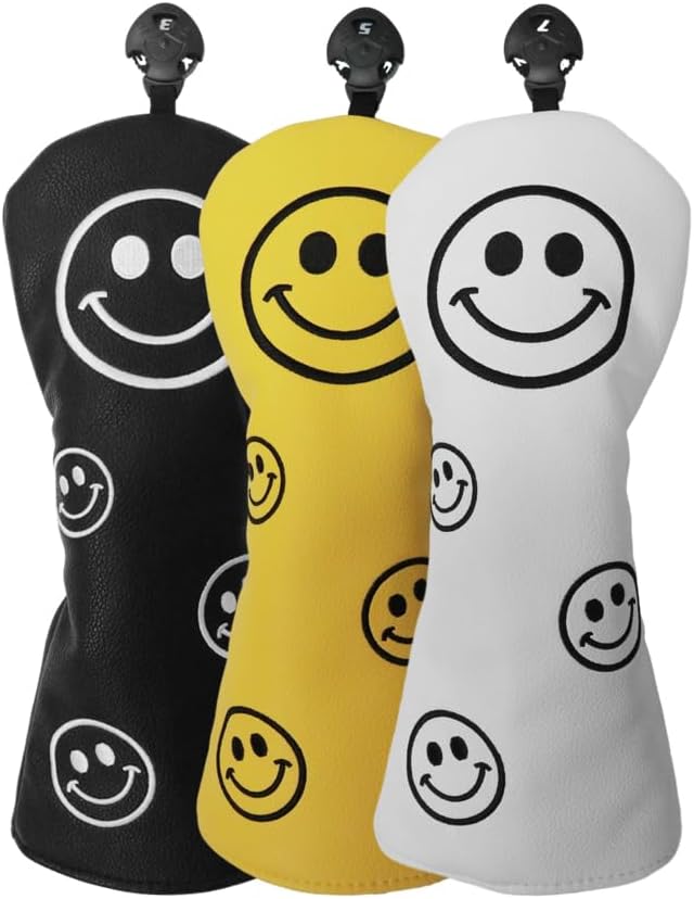 ゴルフヘッドカバー ドライバー用 440cc 460cc ウッド用 ユーティリティ UT用 カバー スマイル 黒 白 黄 単品 3セット 4セット
