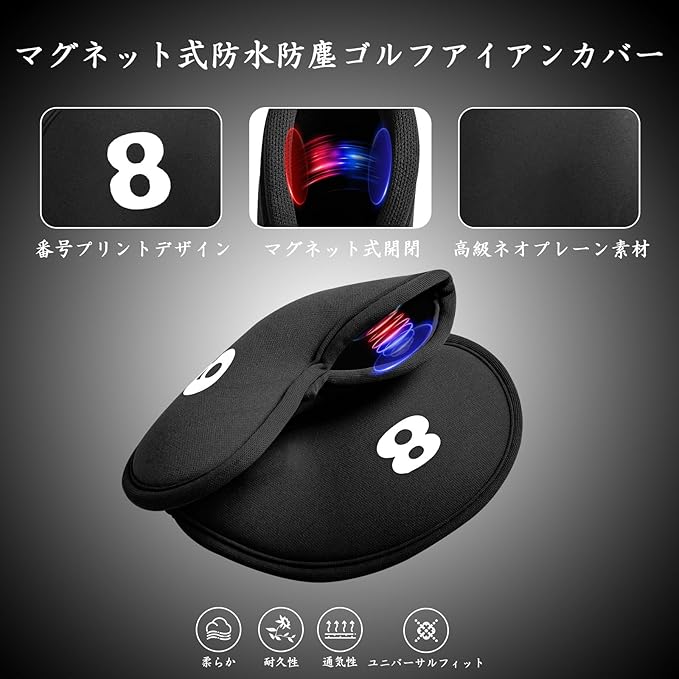 【高品質素材】:アイアンカバーは伸縮性抜群なネオプレン素材を採用しております。耐久性が良くて長持ちです。洗濯可能なので、長時間に大切なゴルフクラブをキズから守れます。