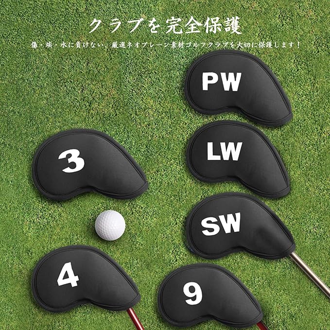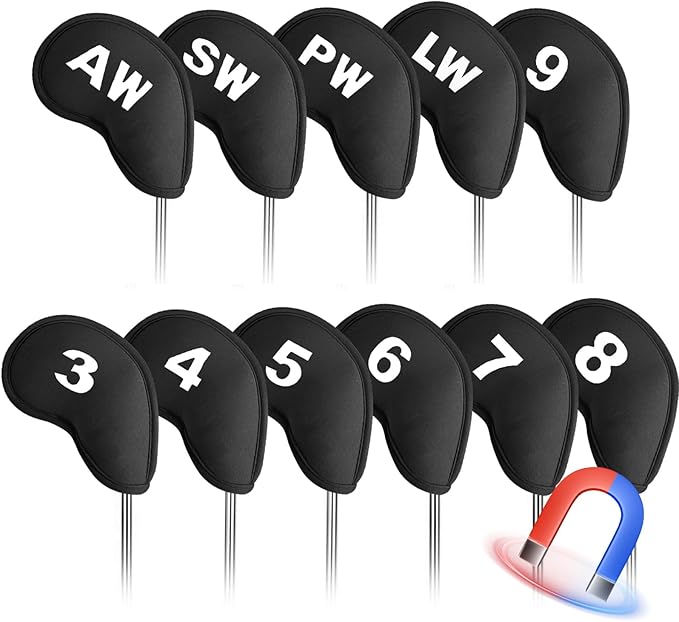 ゴルフアイアンカバー 11枚セット マグネット式開閉 ゴルフヘッドカバー ウェッジカバー ネオプレン素材 軽量 番号付き ヘッド保護カバー LT-018