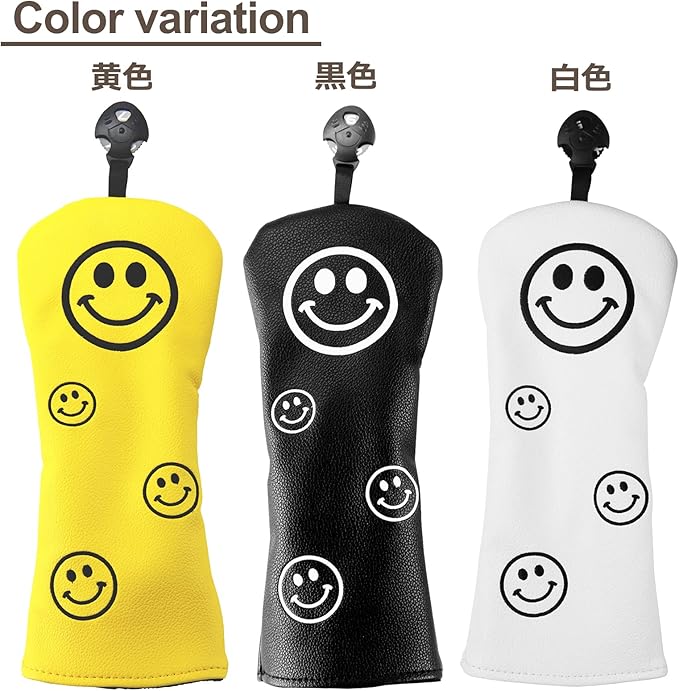 かわいいスマイルデザイン、高品質のPUレザーで、しっかりクラブヘッドを保護でき、防水タイプ、3色