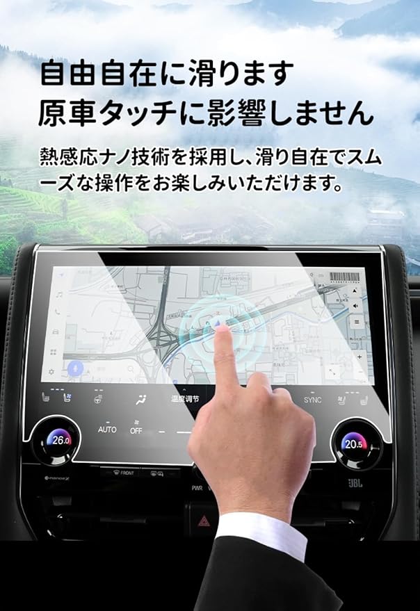 【貼り付け簡単・気泡防止・シルキーなタッチ体験をお楽しみ】アルファード 新型 2024 カーナビ 保護フィルムは、シリコン吸着素材を使用しており、説明書や固定用シールなどのキットも付属しているため、初心者でも簡単に貼り付けることができます。【ご注意】: ほこりや汚れは気泡の原因となります。画面をきれいにしてから貼り付けてください。気泡ができても、添付のヘラを使いながら貼れば気泡も入りにくく、出来た気泡も逃げやすいです。【0.33mm極薄】:厚さわずか0.33mmの超薄設計で、指先が軽やかにスライドし、快適な操作が可能、オリジナルの画面体験をさらに上回るシルキーなタッチを実現します。