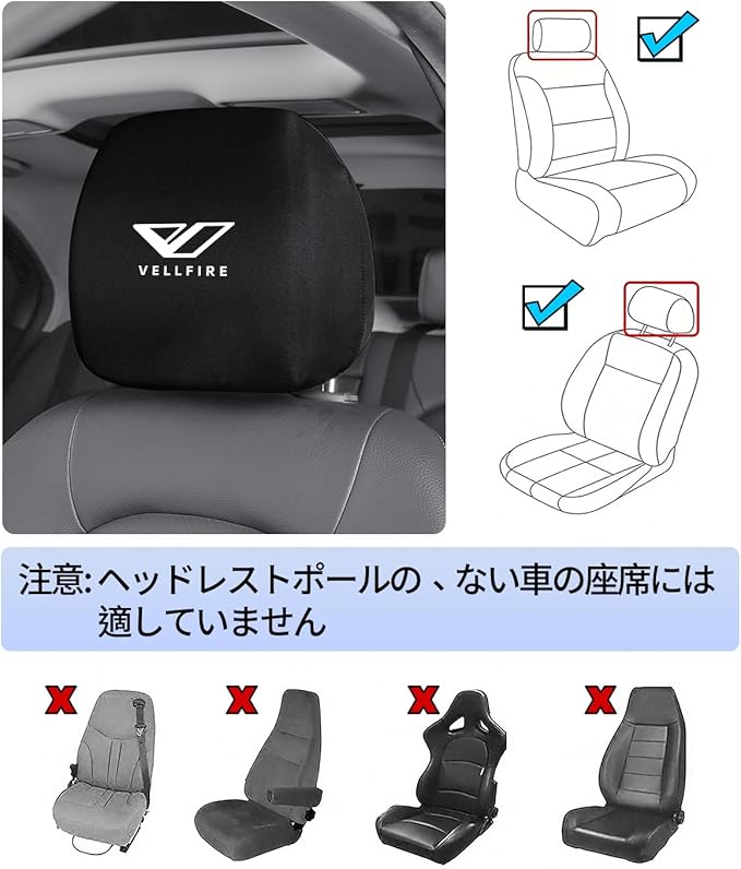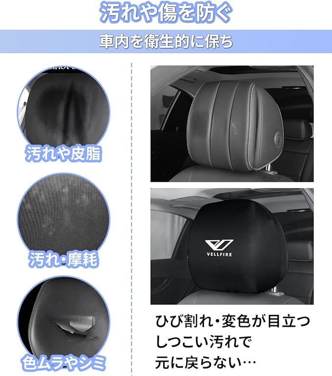 ヴェルファイア 適用 車 ヘッドレストカバー 汚れ防止 ヴェルファイア 20系 30系 40系 対応 通気性 被せるタイプ ヘッドレストバッドカバー 速乾生地 シミ防止 車用 防塵カバー 頭枕保護カバー カー 摩耗防げ 洗濯可 2枚セット(ヴェルファイア 適用)
