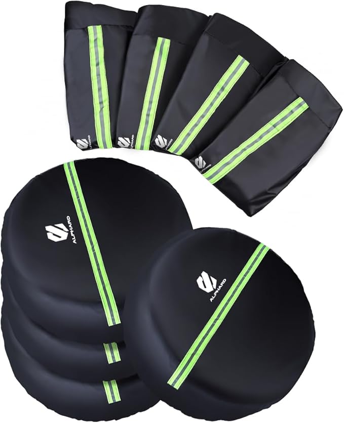 【安心駐車・車の識別性向上】この車用タイヤ保護カバーには反射ストリップが装備されており、屋外や駐車場に車を停める際に愛車の識別性を向上させます。夜間や暗い場所でも他の車両や歩行者の目を引き、事故を防ぐことができます。また、野良動物によるタイヤの汚染を防ぐ効果もあります。