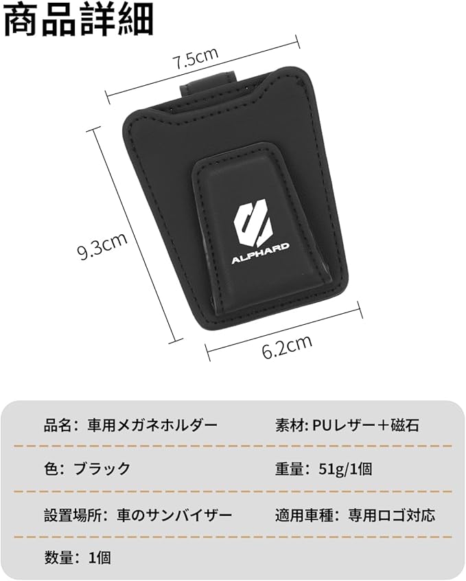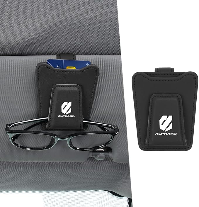 アルファード 専用 車用 メガネホルダー ALPHARD 専用ロゴ 薄型 サングラスホルダー アルファード 20系 30系 40系 適用 片手使用 車 カード 駐車券 ホルダー 取付簡単 眼鏡クリップ 車用収納 マグネット式 レザー製 サンバイザー取付 多機能(ブラック,アルファード 専用)