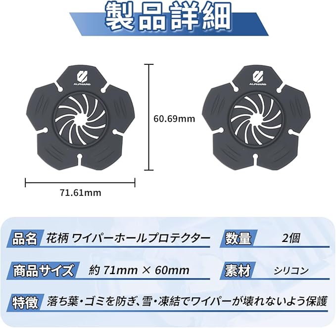 アルファード 専用 ワイパーホールカバー 落ち葉防止 ALPHARD アルファード 30系 40系 20系 カスタム 外装パーツ ロゴ付き 車用ワイパー穴保護カバー 耐久 防塵 取付簡単 便利グッズ カーアクセサリー 柔いシリコン素材(2枚 ブラック)