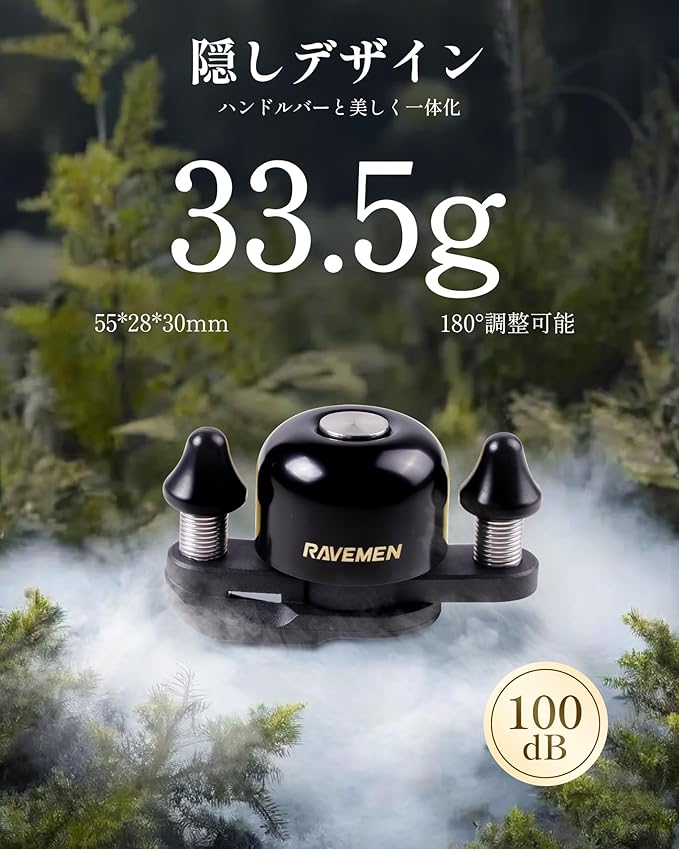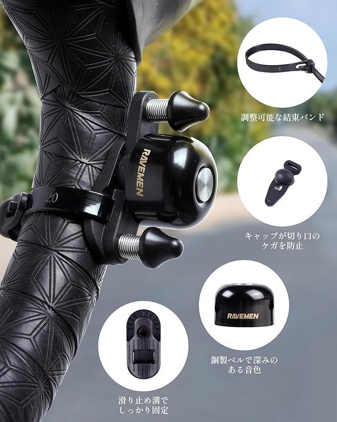 RAVEMEN Q3 自転車 ベル ロードバイク専用デザイン 多様な握り姿勢に対応 軽量 コンパクト 防錆 銅製 工具不要 簡単取付