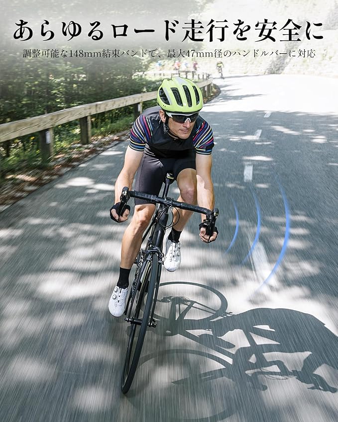 【コンパクト・軽量・隠しデザイン】 55 28 30mmの超小型ボディ(重量33.5g)で空力性能を阻害しません。ブラックカラーの隠し付け設計がドロップハンドルと一体化。底面の滑り止め溝で安定性抜群。グランフォンドやヒルクライムでも邪魔になりません。