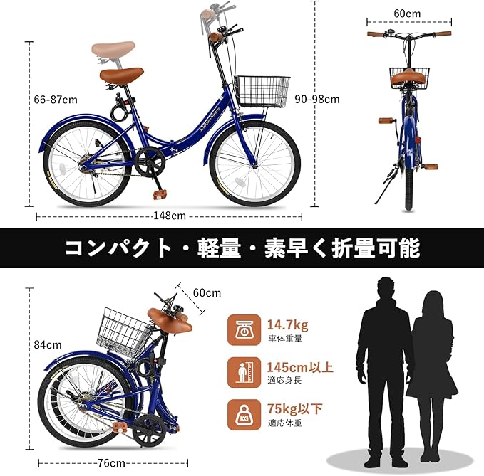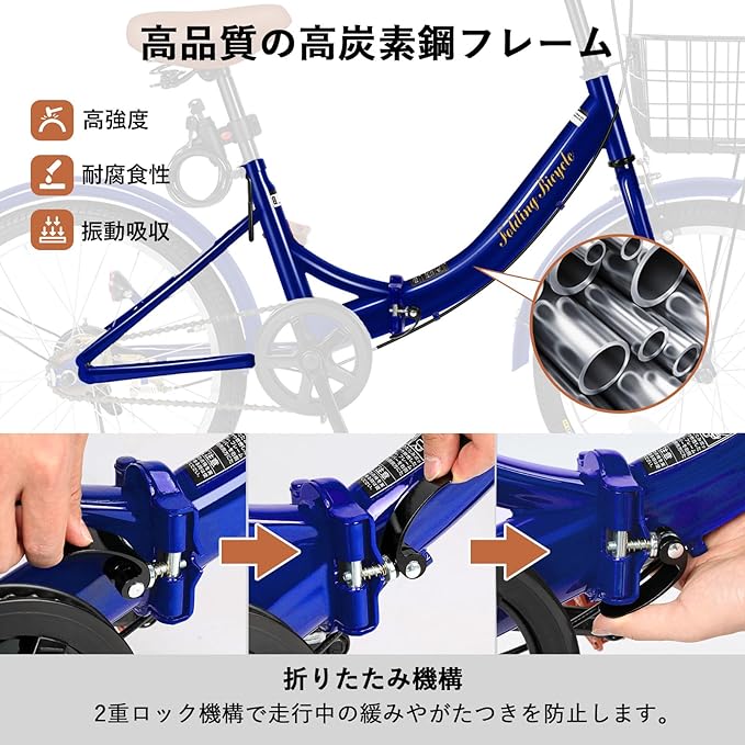 【安心のアフターサービス】折りたたみ自転車はワイヤーロック、ベル、カゴなどを同梱しております。1年保証付きで、ご連絡いただければ誠心誠意対応させていただきます。ご注意:自転車は大型商品のため、Amazonの返品受付センターで返品手続きをお受けできない場合がございます。その際は取扱説明書に記載されている連絡先までご連絡くださいませ。