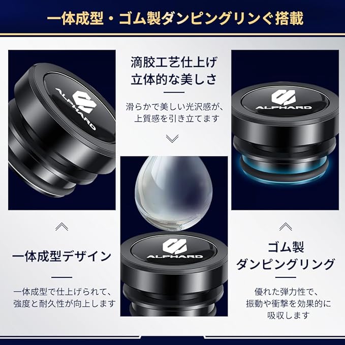 【高品質材質による優れた強度と圧倒的な厚重感、贅沢な高級感を演出】弊社の製品は新型アルファード 40系/30系/20系/10系 全シリーズに対応します。耐久性に優れた高品質材質を採用しており、手に取った瞬間からそのずっしりとした重厚感を感じることができます。一体成型による優れた強度を誇り、時間が経っても色褪せることなく、いつまでも美しい状態を保ちます。高品質材質の特性により、表面は滑らかで光沢のある仕上がりとなり、高級感あふれる外観が車内を一層洗練された印象に変えます。重厚感がありつつも美しく仕上げられており、車内インテリアにアクセントを加えるために欠かせないアイテムです。